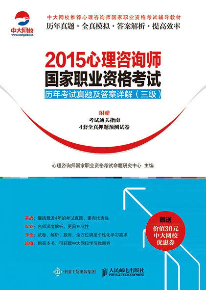 2015心理咨询师国家职业资格考试历年考试真题及答案详解(三级)(附赠考试通关指南、4套全真押题预测试卷)